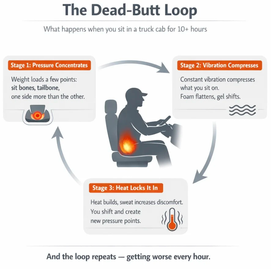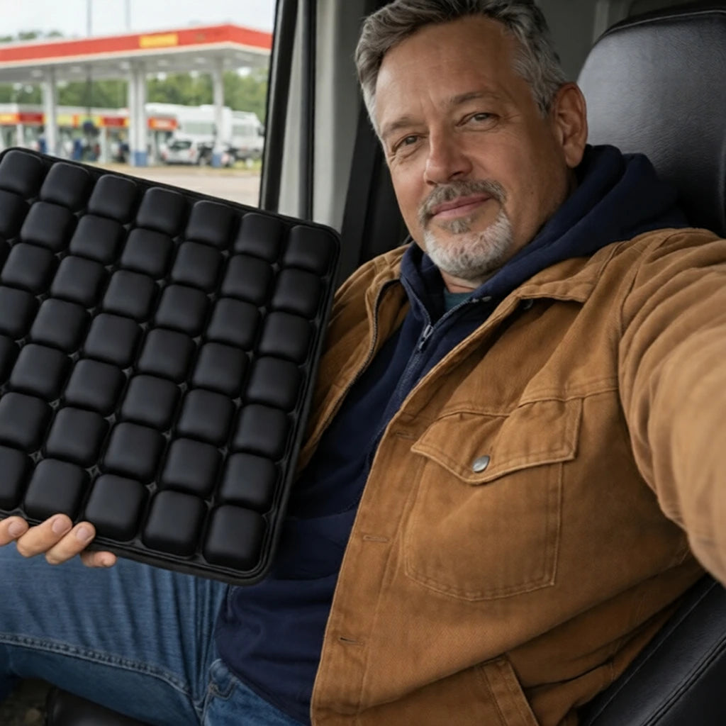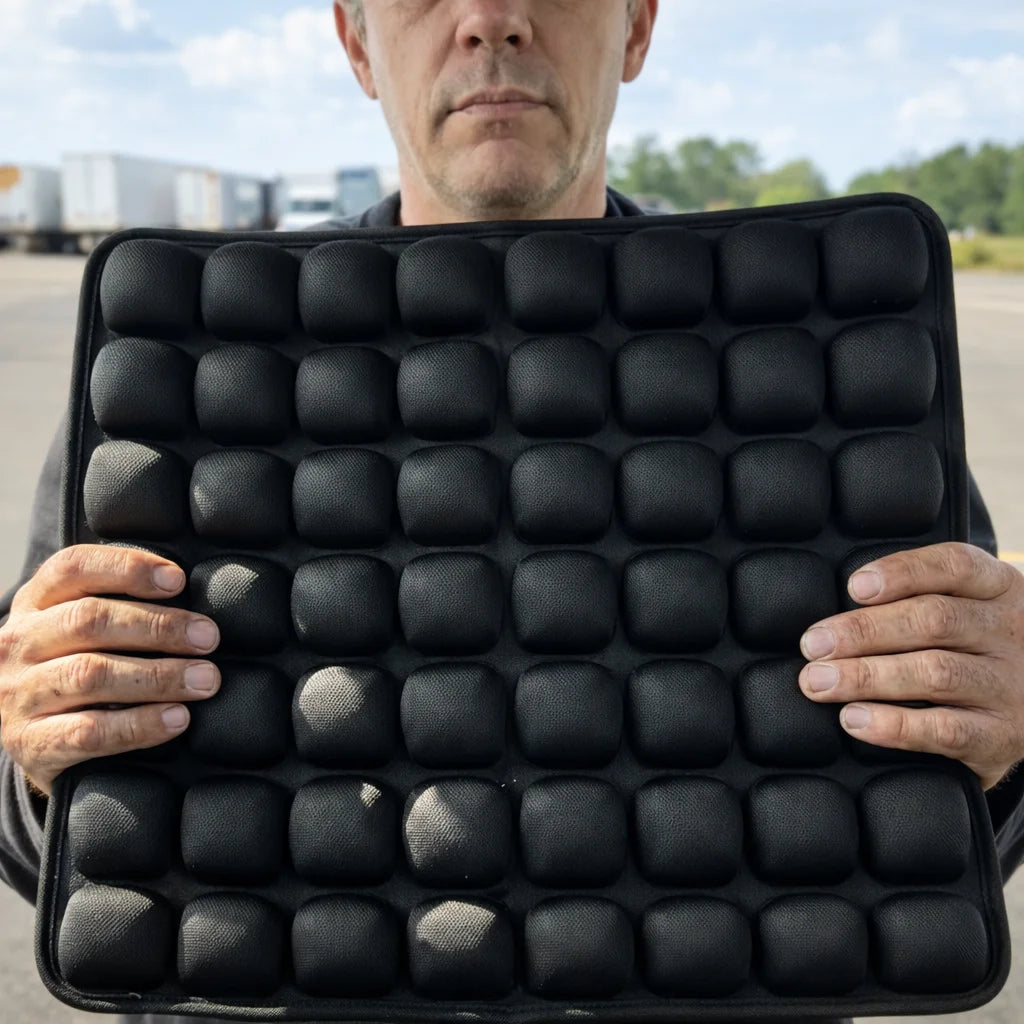 The interconnected air cells redistribute pressure across the entire surface, reducing the load on your tailbone and sit bones. Many drivers report less discomfort on long shifts. It's not a medical device, but it's designed to reduce pressure where it hurts most.